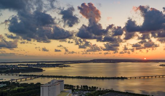 澄み渡る青空と湖の輝き、そして夕陽に染まる幻想的な風景など、