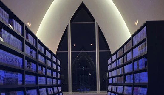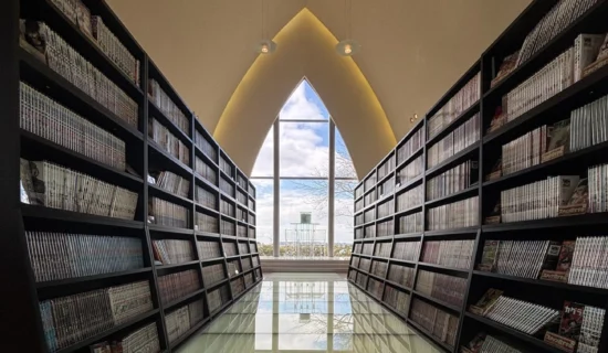 채플을 재이용한 공간에서 느긋하게 편히 쉬면서 좋아하는 만화를 마음껏 즐길 수 있는 공간