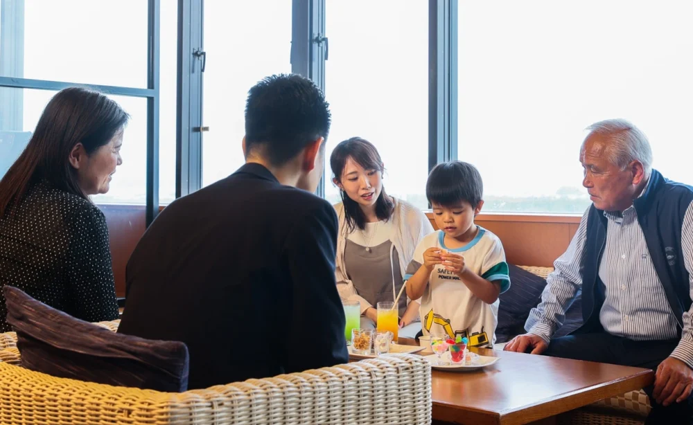 ラウンジから望む浜名湖に沈む美しい夕日を眺めながら、3世代のご家族がそれぞれのスタイルでお楽しみいただけるよう、「キッズ」「パパママ‧ご夫婦」「シニア」と3つのテーマで構成された、エグゼクティブ レイクビューラウンジ限定の特別なメニューやサービスをご用意いたしました。