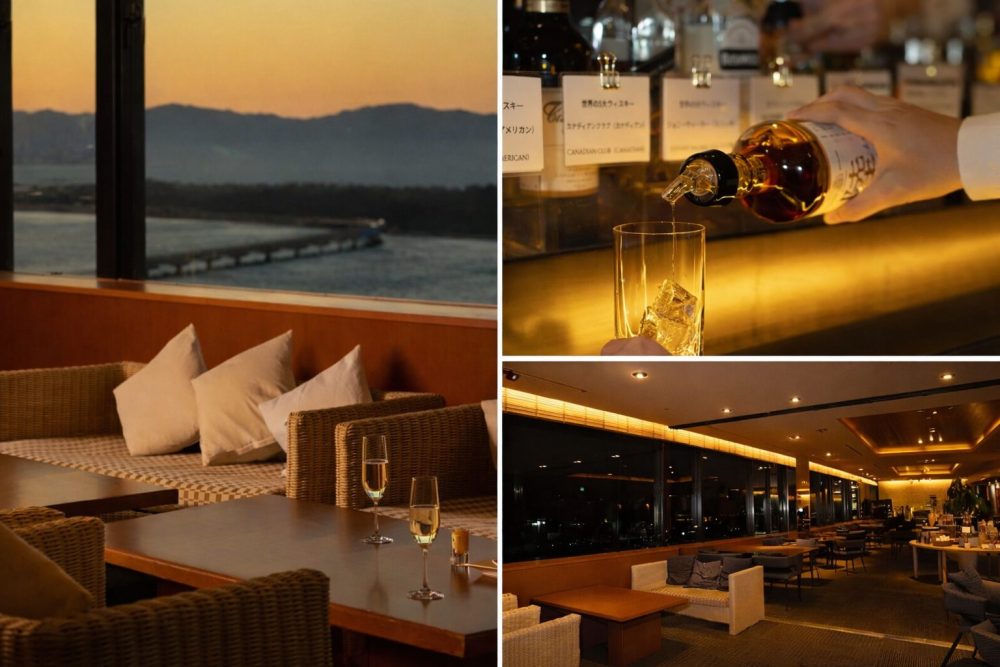 ホテル最上階13階に位置し、浜名湖の雄大な景色を眺めながら、ビールやスパークリングワイン、赤ワイン、白ワインや、おつまみとして、焼津産の鰹を使用したかつおぶしチップス「バリ勝男クン。」や「うなぎボーン」も用意しており、ご当地の味を楽しめます。