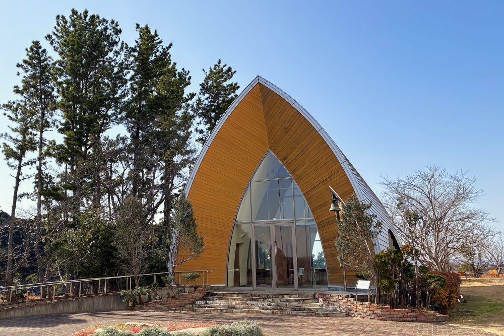 利用天花板高高的教堂建築之美,祭壇前端是浜名湖的全景。